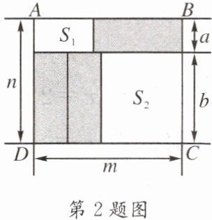 2. 三个完全相同的小长方形不重叠地放入大长方形 $ ABCD $ 中,将图中的两个空白小长方形分别记为 $ S_1、S_2 $,各长方形中长与宽的数据如图所示,则以下结论正确的是(