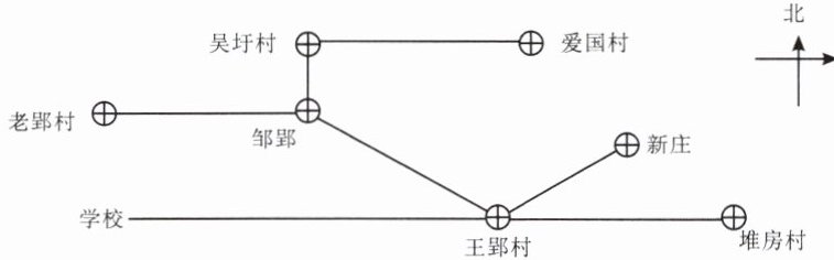(3)(示例)从学校出发,一直往东到王郢村,再往西北到邹郢,然后往北到吴圩村最后再向东到达爱国村。(从学校出发,一直向前到王郢村,左转到邹郢,再往北到吴圩村,最后向东不远到达爱国村)。