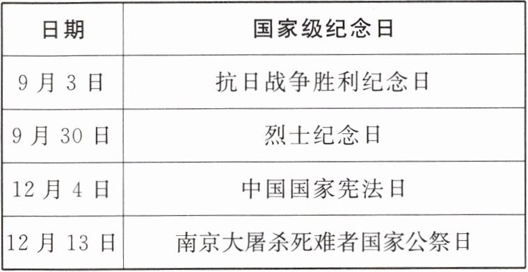 (1)我国以立法形式确定了以下 4 个国家级纪念日,请你依照示例,选择其中一个,写一则宣传标语。