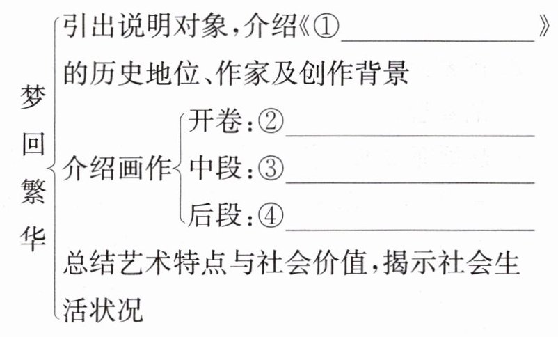 ①清明上河图 ②汴京近郊的风光 ③汴河两岸的繁华情景 ④汴京市区的街道