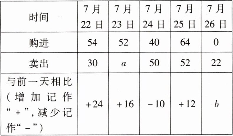 11. 小颖暑假与妈妈在某平台上直播销售葡萄,$7月21日结束时还剩葡萄16$箱,后续$5$天的直播销售中其库存葡萄的进出情况如下表: