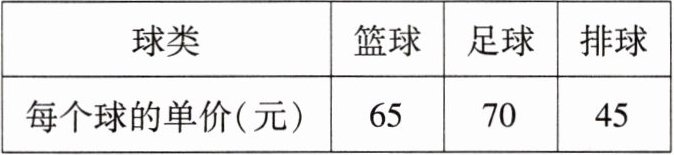 (1)可得篮球个数为2m-6,排球个数为m+1,所以三种球的总费用为70m+65(2m-6)+45(m+1).整理后得245m-345,即三种球的总费用为(245m-345)元.