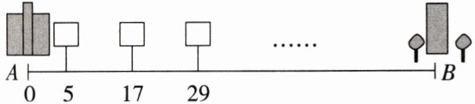 6. 如图,$ A,B $ 两地之间有一条东西走向的道路. 在 $ A $ 地的东边 5 km 处设置第一个广告牌,之后每往东 12 km 就设置一个广告牌. 一辆汽车从 $ A $ 地出发,沿此道路向东行驶. 当经过第 $ n $ 个广告牌时,此车所行驶的路程为