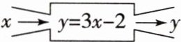 8. 如图,$ y = 3x - 2 $ 表示了自变量 $ x $ 与因变量 $ y $ 的关系,当 $ x $ 每增加 1 时,$ y $ 增加 (