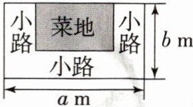 5. 如图,池塘边有一块长为 $ a $ m,宽为 $ b $ m 的长方形土地,现将其余三面都留出宽是 1.5 m 的小路,中间余下的长方形部分做菜地,则菜地的周长为 (