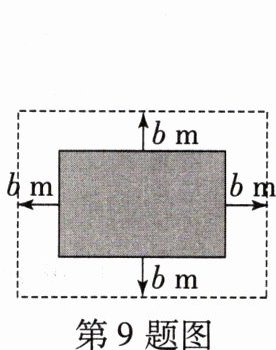 9. 为开展劳动教育,某校想把一块周长为$30m的长方形荒地按如图方式等距外扩b m$,改造成一个长方形劳动基地,并且用栅栏围起来,则需要栅栏(