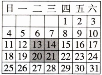 2. 从某个月的月历表中取一个 $ 2 × 2 $ 方块. 已知这个方块所围成的 $ 4 $ 个方格的日期之和为 $ 44 $,求这 $ 4 $ 个方格中的日期. 若设左上角的日期为 $ x $,则下列方程正确的是(