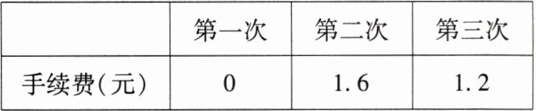 (2) 小管使用微信至今,用自己的微信账户共提现三次,提现手续费如下表: