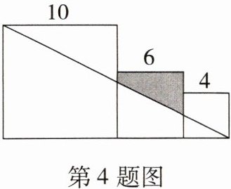 4. (2023·广东中考)边长分别为10,6,4的三个正方形拼接在一起,它们的底边在同一直线上(如图),则图中阴影部分的面积为