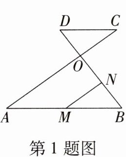 1. (2023·黑龙江哈尔滨中考)如图,AC,BD相交于点O,AB// DC,M是AB的中点,MN// AC,交BD于点N,若DO:OB= 1:2,AC= 12,则MN的长为 (