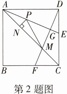 2. (2023·东营中考)如图,正方形ABCD的边长为4,点E,F分别在边DC,BC上,且BF= CE,AE平分∠CAD,连接DF,分别交AE,AC于点G,M,P是线段AG上的一个动点,过点P作PN⊥AC,垂足为N,连接PM.有下列四个结论: