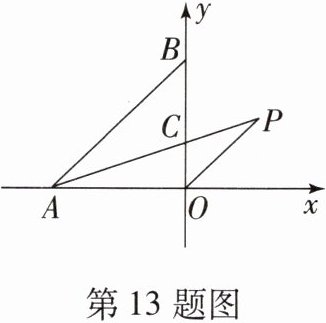 13. (2023·枣庄台儿庄区模拟)如图,在平面直角坐标系中,点A,B分别在x轴负半轴和y轴正半轴上,点C在OB上,OC : BC = 1 : 2,连接AC,过点O作OP // AB交AC的延长线于P. 若P(1,1),则tan∠OAP的值是 ( )