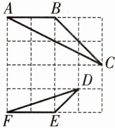 解:由图知AB = EF = 2.由勾股定理,得BC = 2$\sqrt{2}$,AC = 2$\sqrt{5}$,DF = $\sqrt{10}$,DE = $\sqrt{2}$,