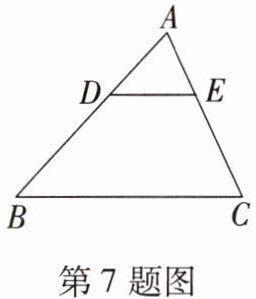 7.(2023·吉林中考)如图,在 $ \triangle ABC $ 中,点 $ D $ 在边 $ AB $ 上,过点 $ D $ 作 $ DE // BC $ 交 $ AC $ 于点 $ E $。若 $ AD = 2 $,$ BD = 3 $,则 $ \frac{AE}{AC} $ 的值是(