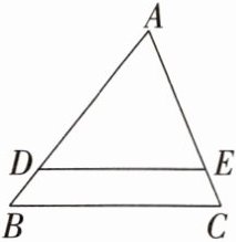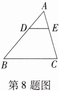 8. 如图,在 $ \triangle ABC $ 中,$ DE // BC $,若 $ AD = 1 $,$ DB = 2 $,则 $ \frac{DE}{BC} $ 的值为