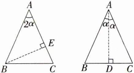 (2)如图,在$\triangle ABC$中,$AB= AC= 1$,$\angle BAC= 2\alpha$,请根据提示,利用面积方法验证结论.