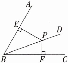 17. 如图,已知$\angle ABC和射线BD上一点P$(点$P与点B$不重合),且点$P到BA$,$BC的距离为PE$,$PF$.