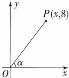 8. 如图,在平面直角坐标系中,$ P $ 是第一象限的点,其坐标为 $ (x,8) $,且 $ OP $ 与 $ x $ 轴正半轴的夹角 $ \alpha $ 的正切值为 $ \frac{4}{3} $,则 $ x $ 的值为