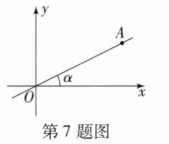 7. 如图,在平面直角坐标系 $ xOy $ 中,直线 $ OA $ 过点 $ (2,1) $,直线 $ OA $ 与 $ x $ 轴的夹角为 $ \alpha $,则 $ \tan \alpha $ 的值为(