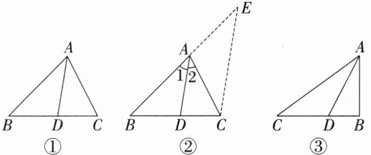 证明:如图②,过 $ C $ 作 $ CE // DA $,交 $ BA $ 的延长线于 $ E … … $