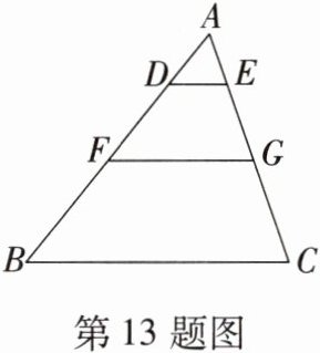 13. 如图,在 $ \triangle ABC $ 中,$ DE // FG // BC $,$ AD:DF:FB = 2:3:4 $,若 $ EG = 4 $,则 $ AC = $