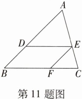 11. 如图,在 $ \triangle ABC $ 中,$ DE // BC $,$ \angle ADE = \angle EFC $,$ AE:EC = 5:3 $,$ BF = 10 $,则 $ CF $ 的长为(