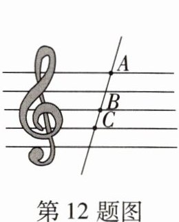 12.(素养题)[2023·青岛市南区校级月考]如图,五线谱是由等距离、等长度的五条平行横线组成的,同一条直线上的三个点 $ A $,$ B $,$ C $ 都在横线上。若线段 $ AC = \frac{15}{2} $,则线段 $ AB $ 的长是( )