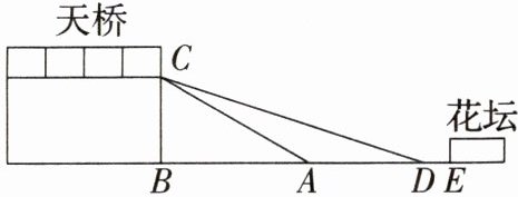 2. 如图所示的是一座人行天桥,天桥的高CB为10米,坡面CA的坡角为30°,为了方便行人推车过桥,市政部门决定降低坡度,使新坡面CD的坡角为18°,离原坡脚A点15米的花坛E与新坡脚D点的距离DE大约为多少米?(结果精确到0.01米.参考数据:$ \sin 18^{\circ}\approx 0.31 $,$ \cos 18^{\circ}\approx 0.95 $,$ \tan 18^{\circ}\approx 0.32 $,$ \sqrt{3}\approx 1.73 $,$ \sqrt{2}\approx 1.41 $)