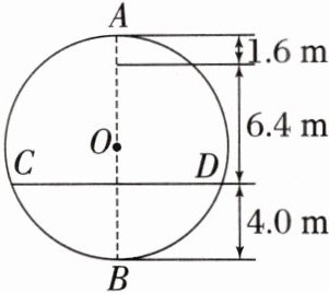 解:如图,连接OC,设AB交CD于E,由题意知AB = 1.6 + 6.4 + 4 = 12,