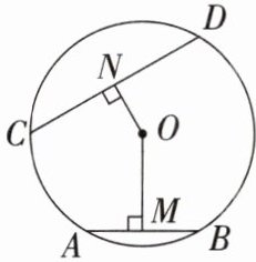 13. 如图,$AB和CD分别是\odot O$的两条弦,过点$O分别作ON \perp CD于点N$,$OM \perp AB于点M$,若$ON = \dfrac{1}{2}AB$,求证:$OM = \dfrac{1}{2}CD$.