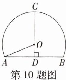 10. (素养题)如图是一个高速公路的隧道的横截面,它的形状是以$O$为圆心的圆的一部分,如果$D是\odot O中弦AB$的中点,$CD经过圆心O交\odot O于点C$,$AB = 24$,$CD = 18$,则此圆的半径$OA$的长为______.