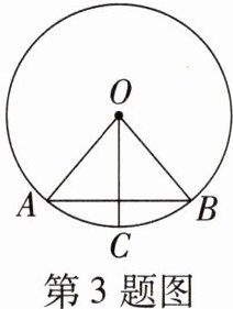 3. 如图,在$\odot O$中,若点$C是\overset{\frown}{AB}$的中点,$\angle OAB = 50^{\circ}$,则$\angle BOC$的度数为 (