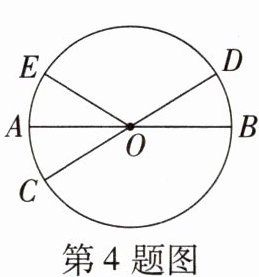 4. 如图,$AB$,$CD是\odot O$的直径,$\overset{\frown}{AE} = \overset{\frown}{BD}$,若$\angle AOE = 32^{\circ}$,则$\angle COE$的度数是 (