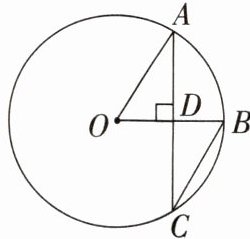 6. (2023·潍坊寒亭区期中)如图,在$\odot O$中,$\angle AOB = 58^{\circ}$,$OB \perp AC于D$,则$\angle OBC = $