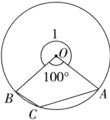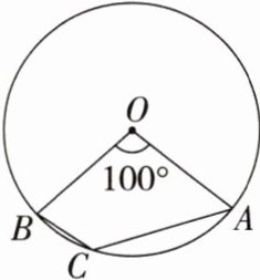 10. 如图,已知圆心角 $\angle AOB$ 的度数为 $100^{\circ}$,则圆周角 $\angle ACB$ 的度数是 ( )