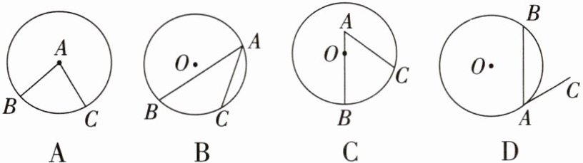 1. 下列图形中,$\angle BAC$是圆周角的是 (