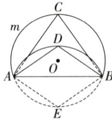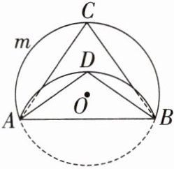 8. 如图,将 $\odot O$ 沿弦 $AB$ 折叠,点 $C$ 在 $\overset{\frown}{AmB}$ 上,点 $D$ 在 $\overset{\frown}{AB}$ 上,若 $\angle ACB = 70^{\circ}$,则 $\angle ADB = $______。