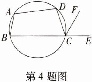 4. 如图,四边形 $ABCD$ 是圆内接四边形,$\angle BAD = 108^{\circ}$,$E$ 是 $BC$ 延长线上一点,若 $\angle ECF = 60^{\circ}$,则 $\angle DCF$ 的度数为(