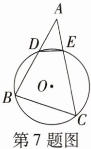 7. 如图,$\triangle ABC$ 中,$\angle A = 40^{\circ}$,$\angle C = 60^{\circ}$,$\odot O$ 与边 $AB$,$AC$ 的另一个交点分别为 $D$,$E$。则 $\angle AED$ 的度数为