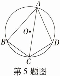 5. 如图,$\odot O$ 是四边形 $ABCD$ 的外接圆,$AC$ 平分 $\angle BAD$,则下列结论:① $AB = AD$;② $BC = CD$;③ $\overset{\frown}{AB} = \overset{\frown}{AD}$;④ $\angle BCA = \angle DCA$;⑤ $\overset{\frown}{BC} = \overset{\frown}{CD}$。其中正确结论的序号是