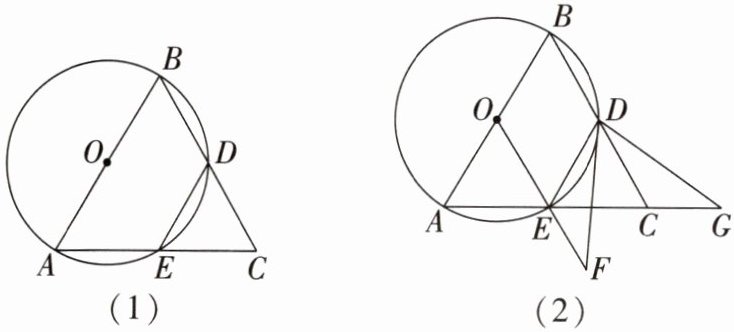 9. 如图(1),已知△ABC,AB = AC,以边AB为直径的⊙O交BC于点D,交AC于点E,连接DE.