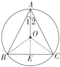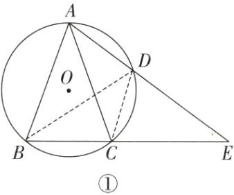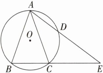 8. 如图,在△ABC中,AB = AC,⊙O是△ABC的外接圆,D为劣弧$\overset{\LARGE{\frown}}{AC}$的中点,连接AD并延长交BC的延长线于点E.