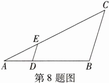 8. 如图,在△ABC中,D,E分别是边AB,AC上的点,如果$\frac{AD}{DB}= \frac{1}{2}$,AE= 4,EC= 8,DE= 2,那么BC=