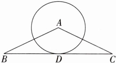 5. 如图,已知$ AB = AC $,$ BD = CD $,点D在BC上,以A为圆心的圆恰好经过点D,求证:BC为⊙A的切线。