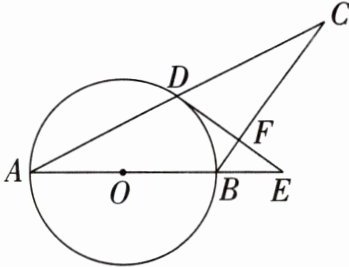 7. 如图,在$ \triangle ABC $中,$ AB = BC $,以AB为直径的⊙O与AC交于点D,过D作$ DF \perp BC $,交AB的延长线于E,垂足为F。求证:DE是⊙O的切线。