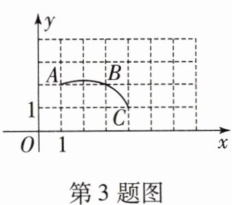 3. 如图,在平面直角坐标系中,过格点A,B,C作一圆弧,点B与下列格点的连线中,能够与该圆弧相切的是(
