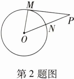 2. 如图,在$ \triangle POM $中,点M在⊙O上,点P在⊙O外,OP交⊙O于点N,以下条件不能判定PM是⊙O的切线的是(