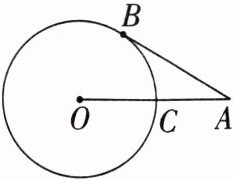 5. 如图,A是⊙O外一点,AB与⊙O相切于点B,连接OA,交⊙O于点C. 若AC= 2,AB= 2√{3},求该圆的半径.