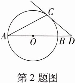 2. 如图,已知⊙O的直径AB与弦AC的夹角为25°,过点C作⊙O的切线交AB的延长线于点D,则∠D的度数为(