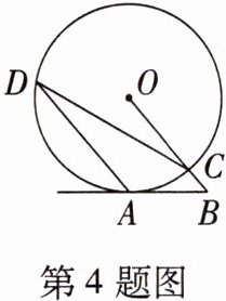 4. (2023·泰安东平县三模)如图,在⊙O中,AB切⊙O于点A,连接OB交⊙O于点C,过点A作AD//OB交⊙O于点D,连接CD. 若∠B= 50°,则∠OCD的度数为